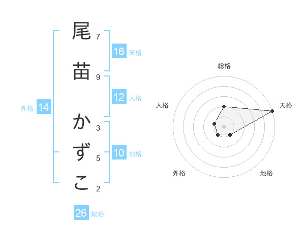 尾苗 かずこさんの天格は16画の5点!