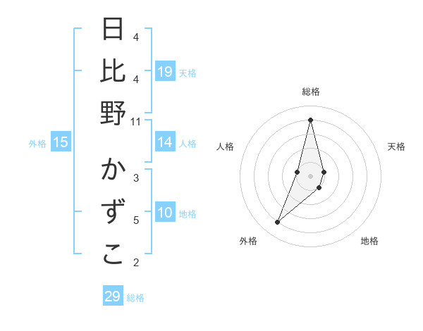 日比野 かずこさんを姓名の画数から五運を鑑定