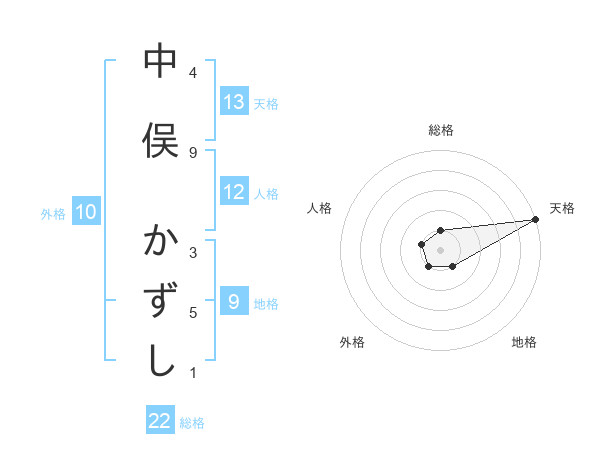 中俣 かずしさんの天格は13画の5点!