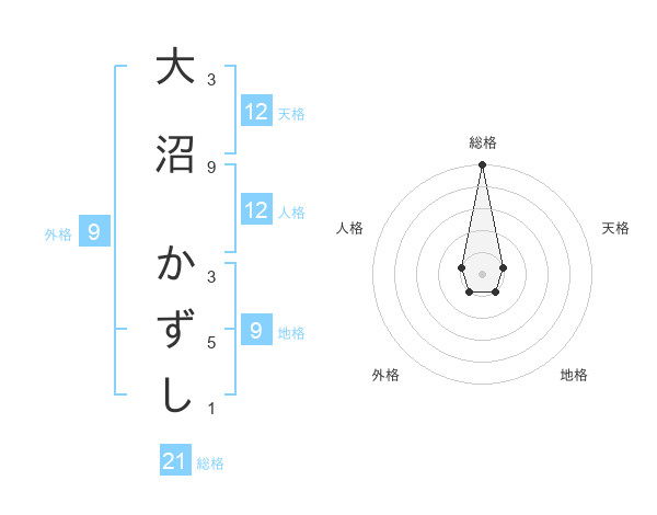 大沼 かずしさんを姓名の画数から五運を鑑定