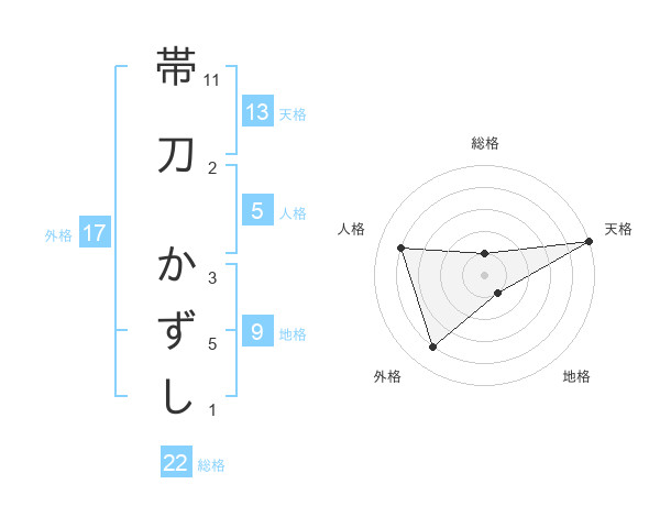 帯刀 かずしさんを姓名の画数から五運を鑑定