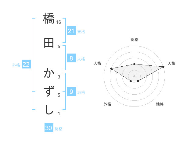 橋田 かずしさんを姓名の画数から五運を鑑定