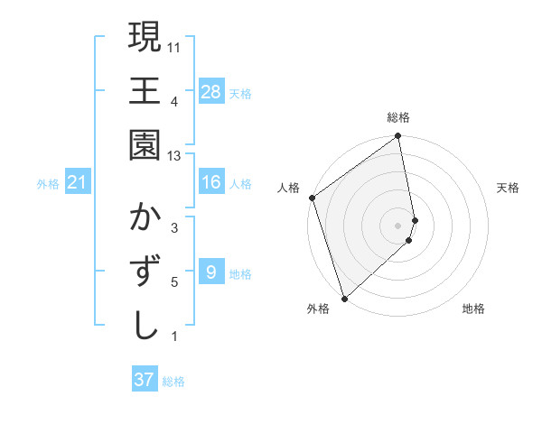 現王園 かずしさんを姓名の画数から五運を鑑定