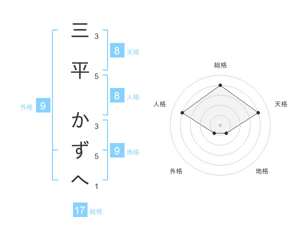 三平 かずへさんの総格は17画の4点!