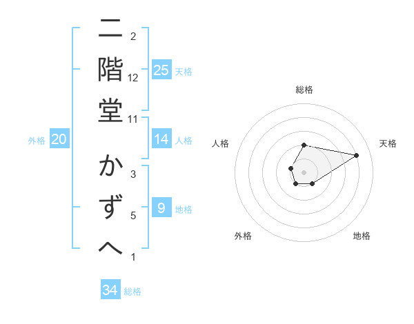 二階堂 かずへさんを姓名の画数から五運を鑑定