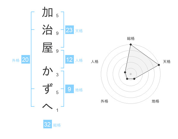 加治屋 かずへさんの天格は23画の5点