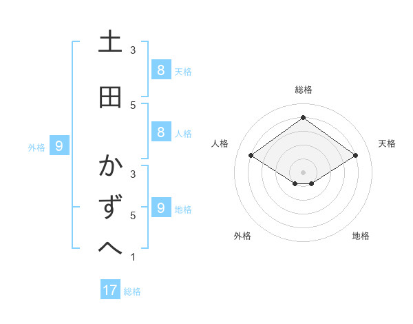 土田 かずへさんの総格は17画の4点!