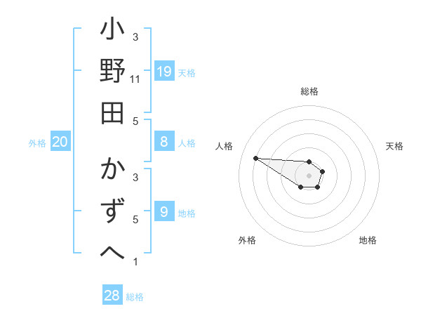 小野田 かずへさんを姓名の画数から五運を鑑定