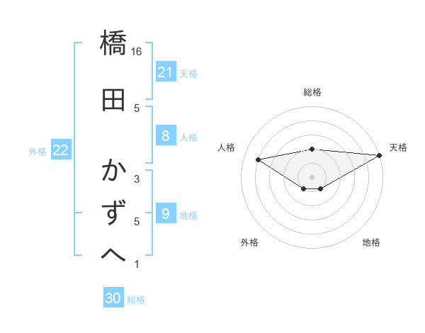 橋田 かずへさんを姓名の画数から五運を鑑定