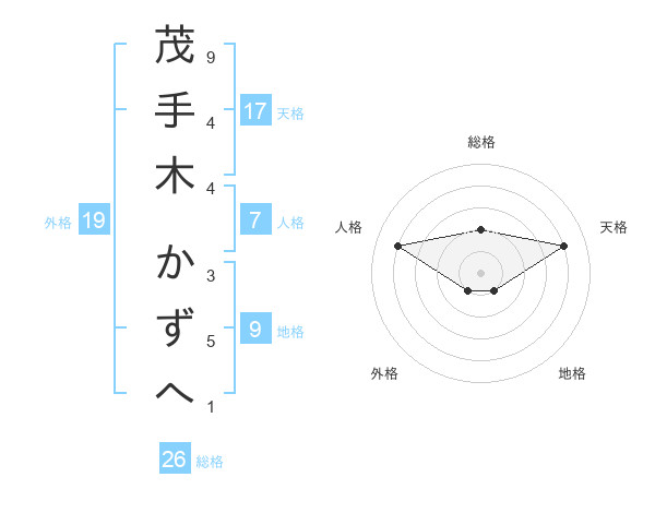 茂手木 かずへさんを姓名の画数から五運を鑑定