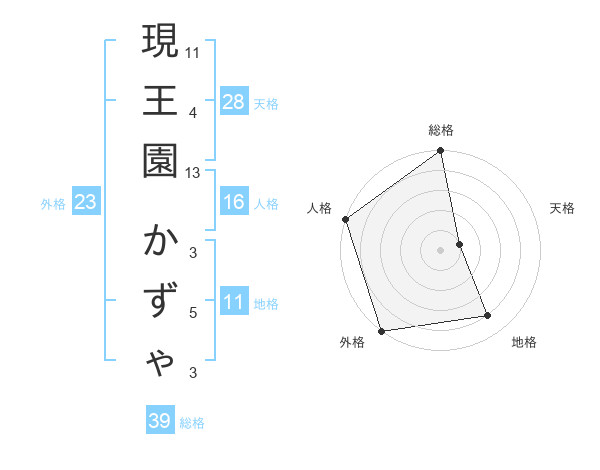 現王園 かずゃさんを姓名の画数から五運を鑑定