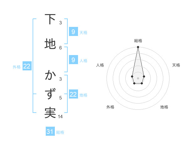 下地 かず実さんの総格は31画の5点