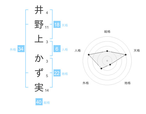 井野上 かず実さんを姓名の画数から五運を鑑定