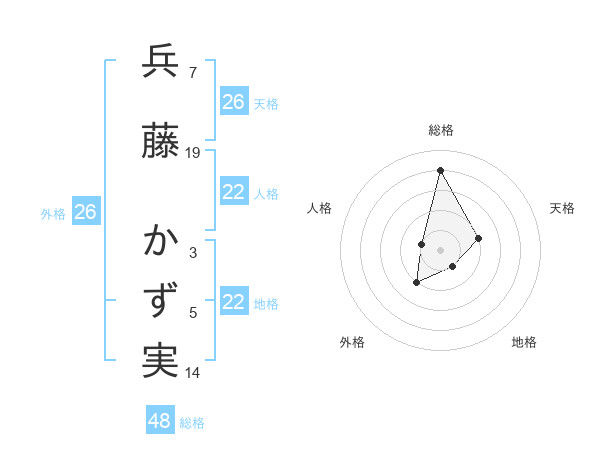 兵藤 かず実さんの総格は48画の4点