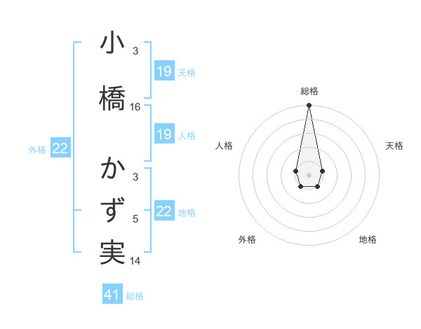 小橋 かず実さんを姓名の画数から五運を鑑定