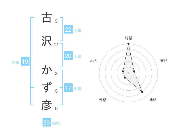 古沢 かず彦さんを姓名の画数から五運を鑑定
