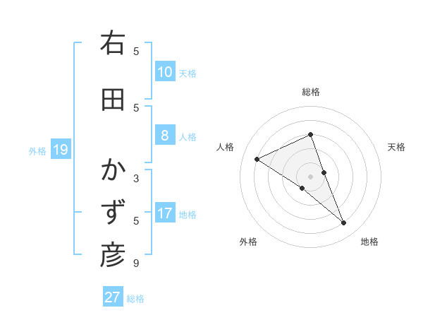 右田 かず彦さんを姓名の画数から五運を鑑定
