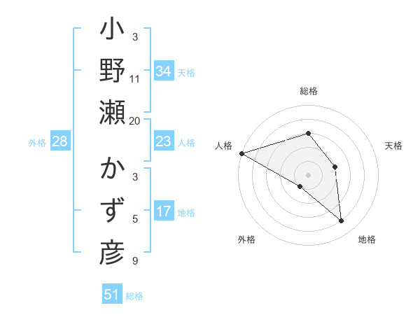 小野瀬 かず彦さんを姓名の画数から五運を鑑定
