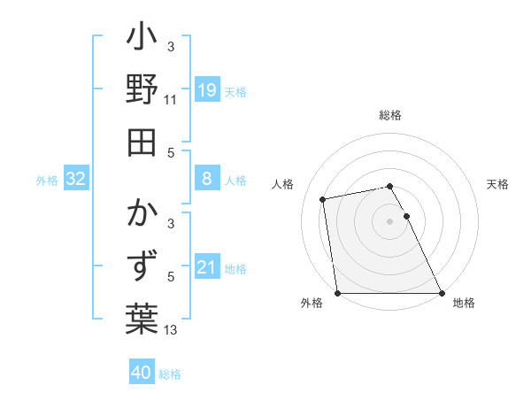 小野田 かず葉さんを姓名の画数から五運を鑑定