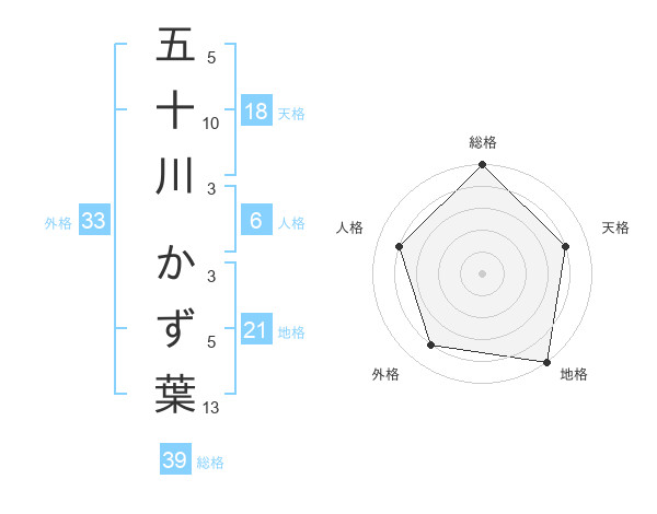 五十川 かず葉さんを姓名の画数から五運を鑑定
