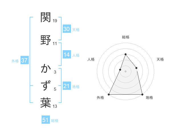 関野 かず葉さんを姓名の画数から五運を鑑定