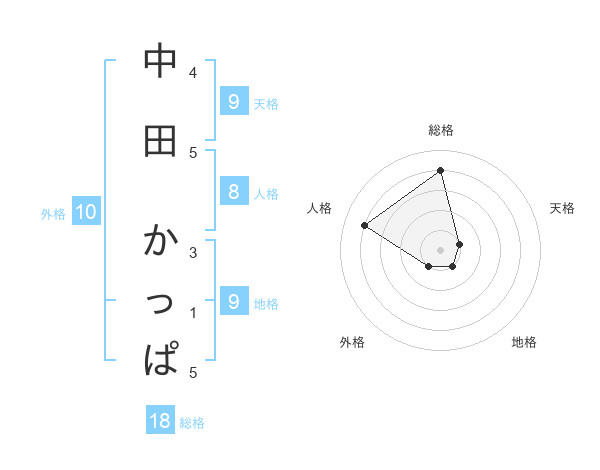 中田 かっぱさんを姓名の画数から五運を鑑定
