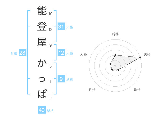 能登屋 かっぱさんを姓名の画数から五運を鑑定