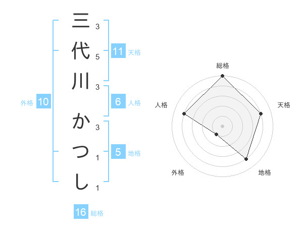 三代川 かつしさんを姓名の画数から五運を鑑定