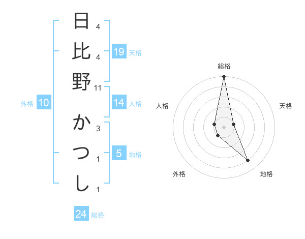 日比野 かつしさんを姓名の画数から五運を鑑定