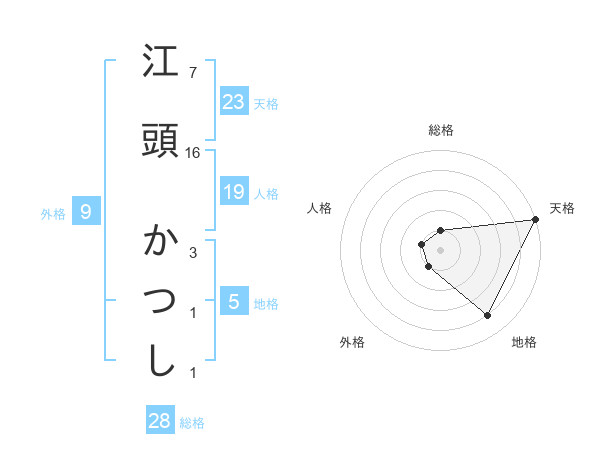 江頭 かつしさんを姓名の画数から五運を鑑定