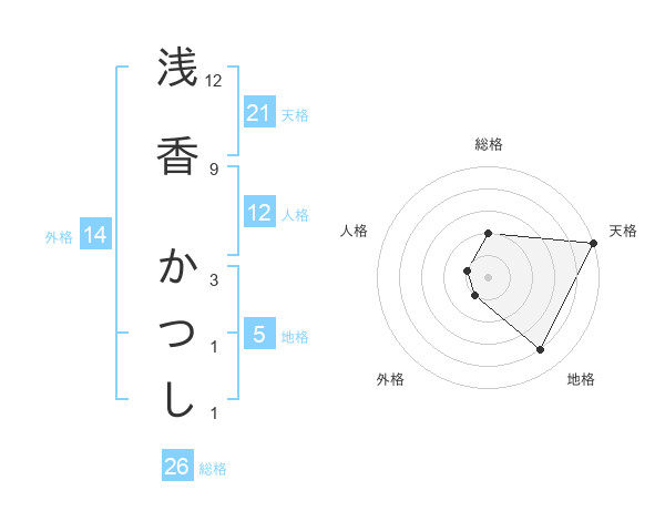 浅香 かつしさんを姓名の画数から五運を鑑定