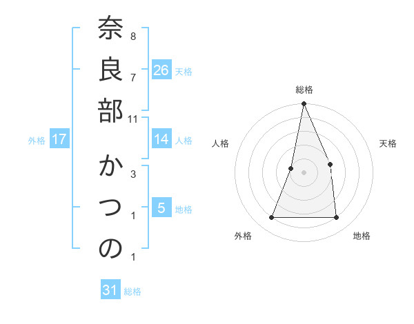 奈良部 かつのさんの総格は31画の5点!