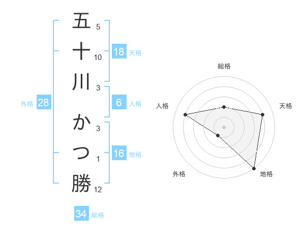 五十川 かつ勝さんを姓名の画数から五運を鑑定