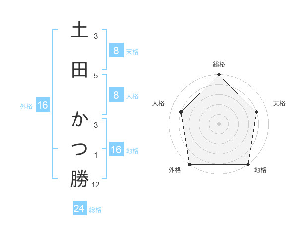 土田 かつ勝さんを姓名の画数から五運を鑑定