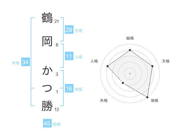 鶴岡 かつ勝さんの総格は45画の4点