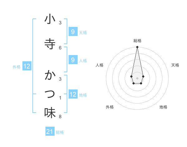 小寺 かつ味さんを姓名の画数から五運を鑑定