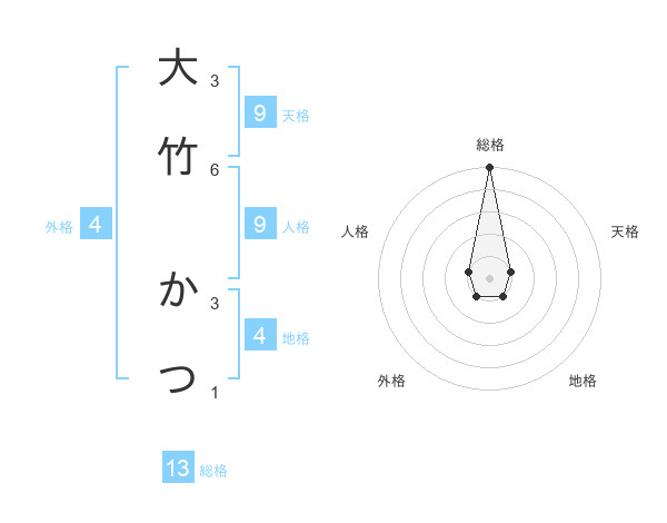 大竹 かつさんの総格は13画の5点!