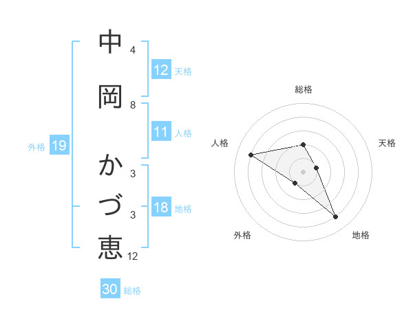 中岡 かづ恵さんを姓名の画数から五運を鑑定