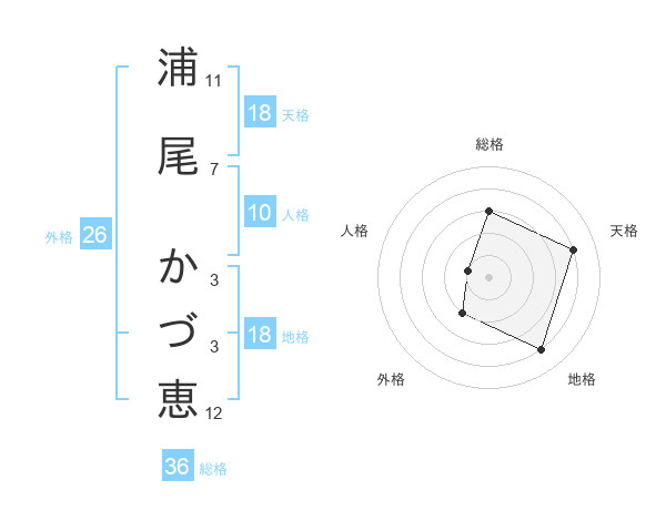 浦尾 かづ恵さんの天格は18画の4点!