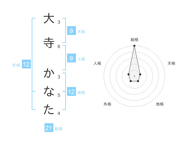 大寺 かなたさんを姓名の画数から五運を鑑定