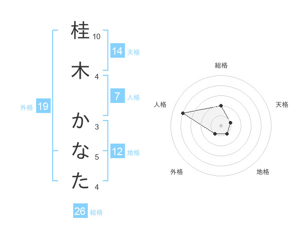 桂木 かなたさんの総格は26画の2点!