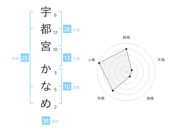 宇都宮 かなめさんを姓名の画数から五運を鑑定