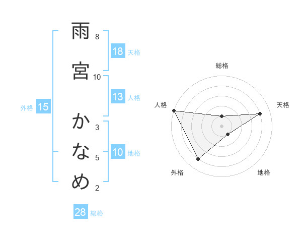 雨宮 かなめさんを姓名の画数から五運を鑑定