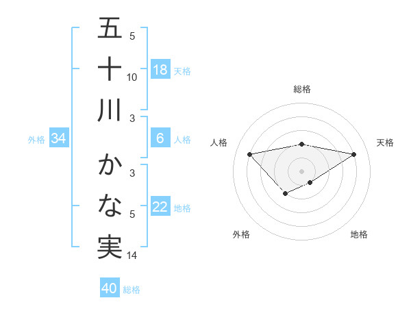 五十川 かな実さんを姓名の画数から五運を鑑定