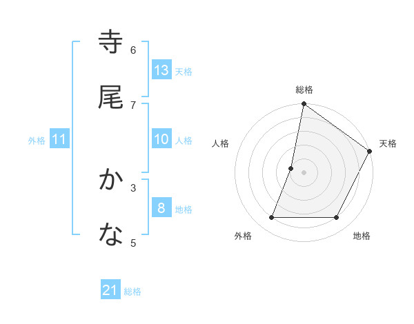 寺尾 かなさんの天格は13画の5点!