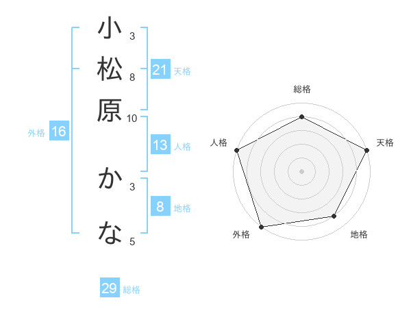 小松原 かなさんの総格は29画の4点!