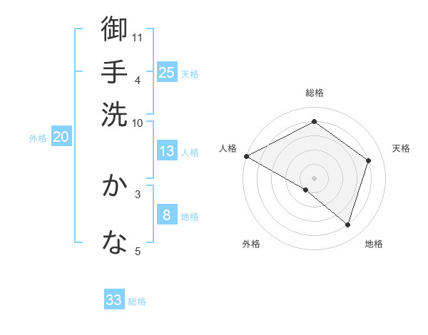 御手洗 かなさんを姓名の画数から五運を鑑定