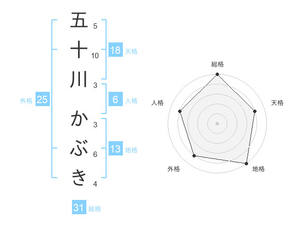 五十川 かぶきさんを姓名の画数から五運を鑑定