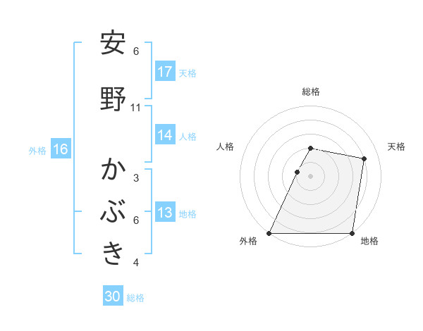 安野 かぶきさんの外格は16画の5点!