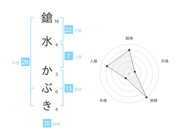 鎗水 かぶきさんの総格は35画の4点!